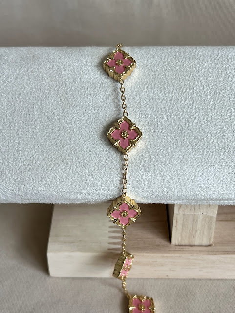 PULSERA FLOR ROSA DORADA