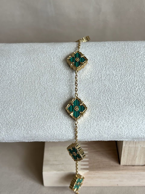 PULSERA FLOR VERDE DORADA